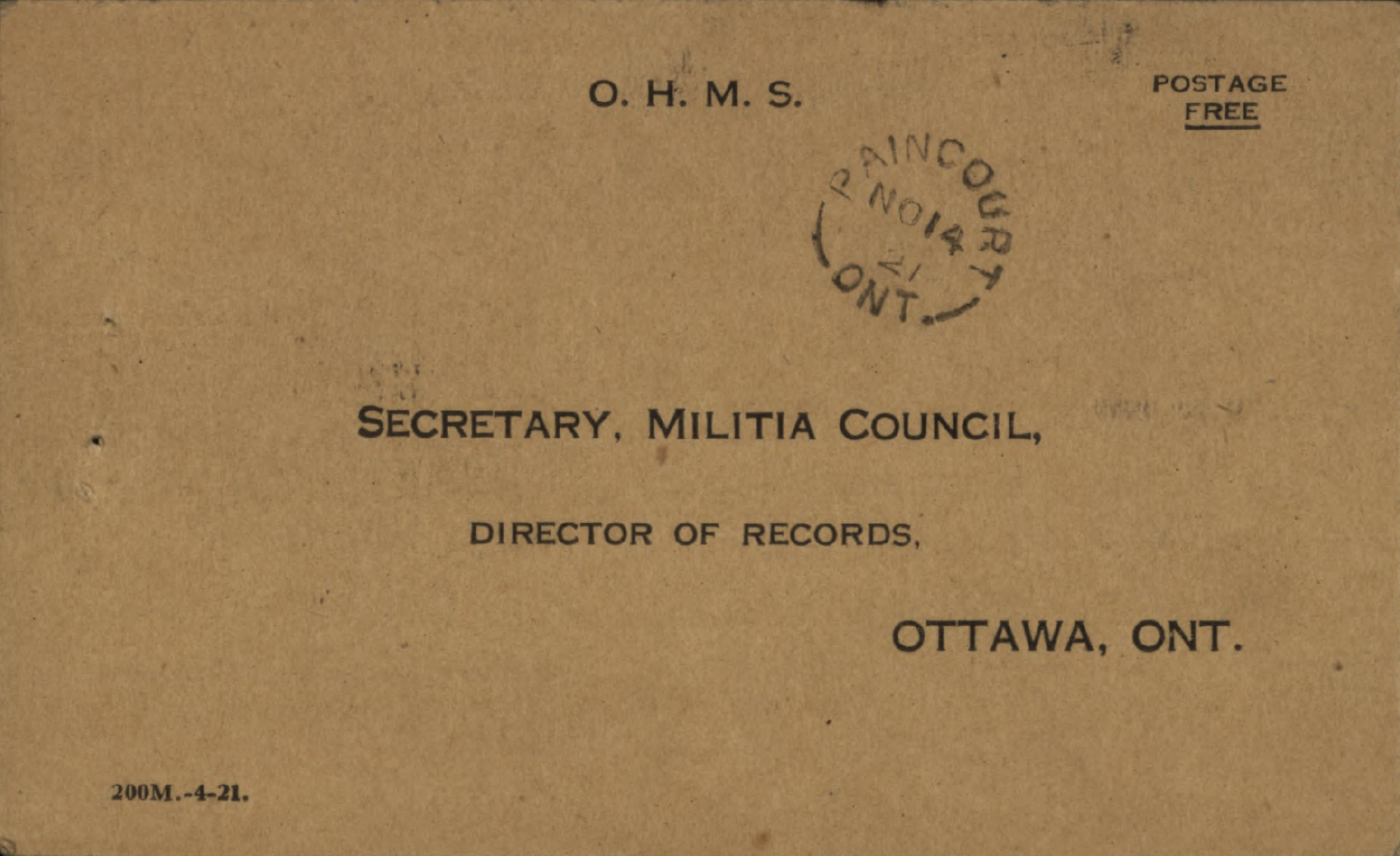 He was a farmer following the Roman Catholic faith and lived in Pain Court, Ontario at his enlistment.