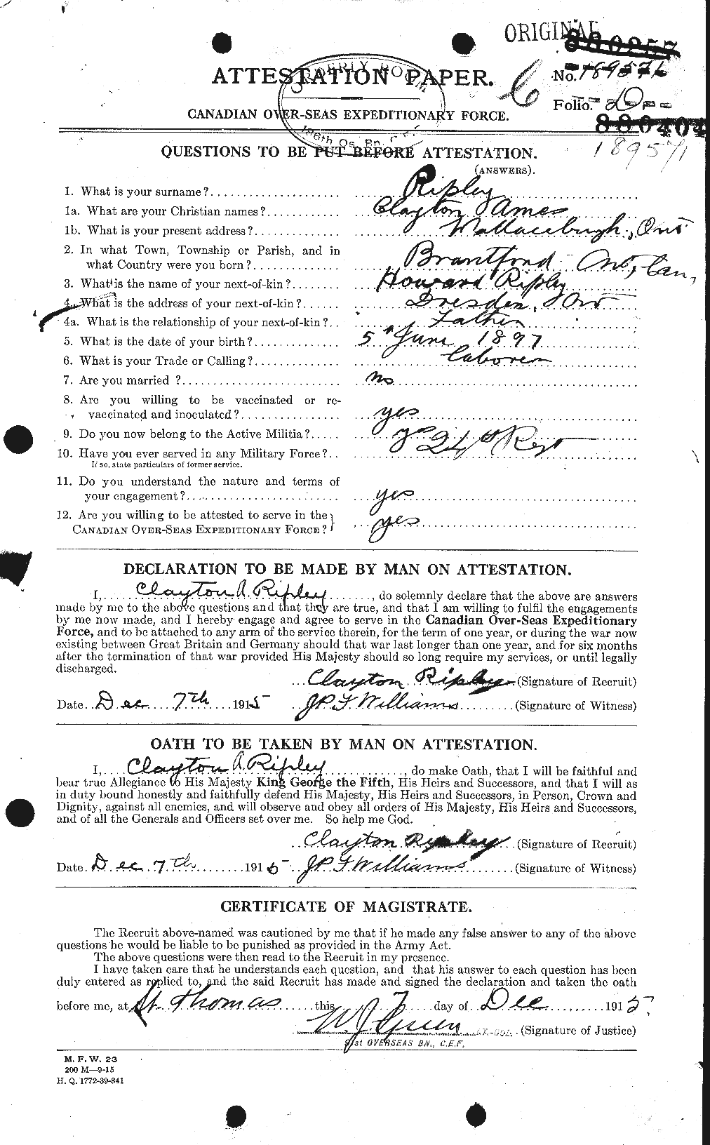 Ripley, Clayton Amos: Service no. 189571 Digitized Service Record Source: Gathering Our Heroes. Find-A-Grave Ripley, Clayton Amos: Service no. 189571. Source: Gathering Our Heroes. Share this: Click to email a link to a friend (Opens in new window) Email Click to share on Facebook (Opens in new window) Facebook Click to share on X (Opens in new window) X Click to share on Reddit (Opens in new window) Reddit Click to share on LinkedIn (Opens in new window) LinkedIn Click to print (Opens in new window) Print Click to share on Tumblr (Opens in new window) Tumblr Click to share on Pocket (Opens in new window) Pocket Click to share on Pinterest (Opens in new window) Pinterest Click to share on Telegram (Opens in new window) Telegram Click to share on WhatsApp (Opens in new window) WhatsApp Like Loading...