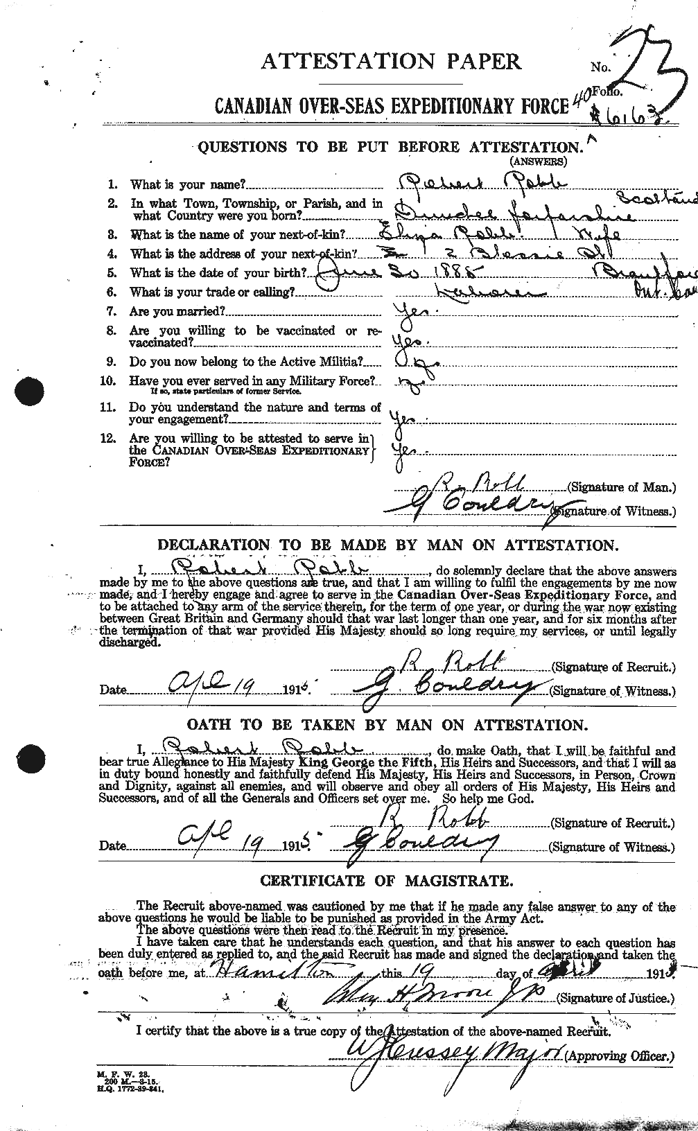 Source: Per research document from Gary in regards to an inquiry at the Great War Dundee web site.
