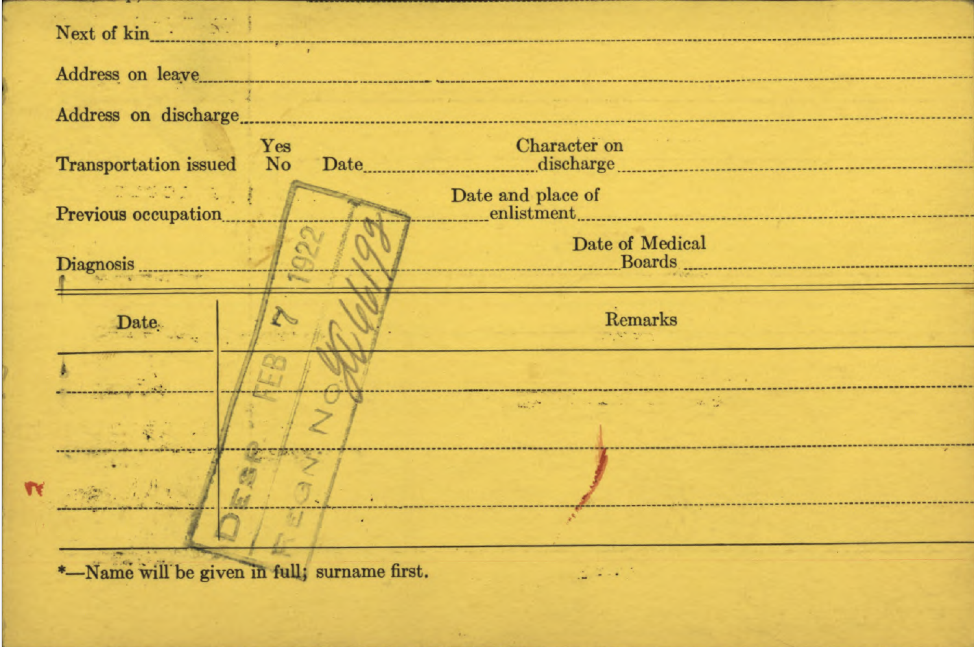 He arrived in England on 16 February 1918 aboard the SS Grampian and was transferred for active combat duty on 18 August 1918 and arrived “in the field” on 28 August 1918.