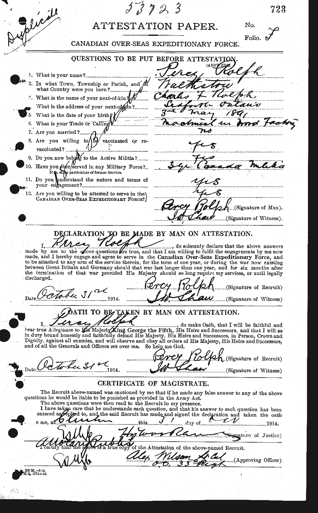 Brother to Sapper Charles Frederick Rolph, who was killed in action on March 28, 1917.