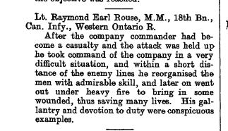 Lt. Raymond Earl Rouse, M.M., 18th Bn., Can. Infy., Western Ontario R.