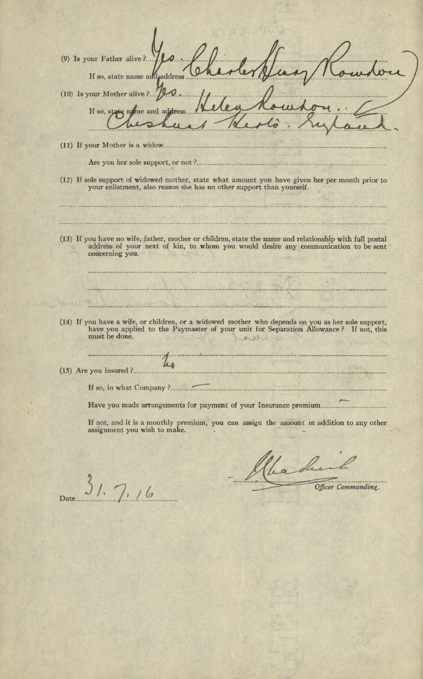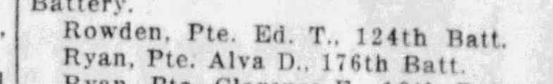 Source: News clipping involving Private Percy West. Name spelled Rowden in news clipping.