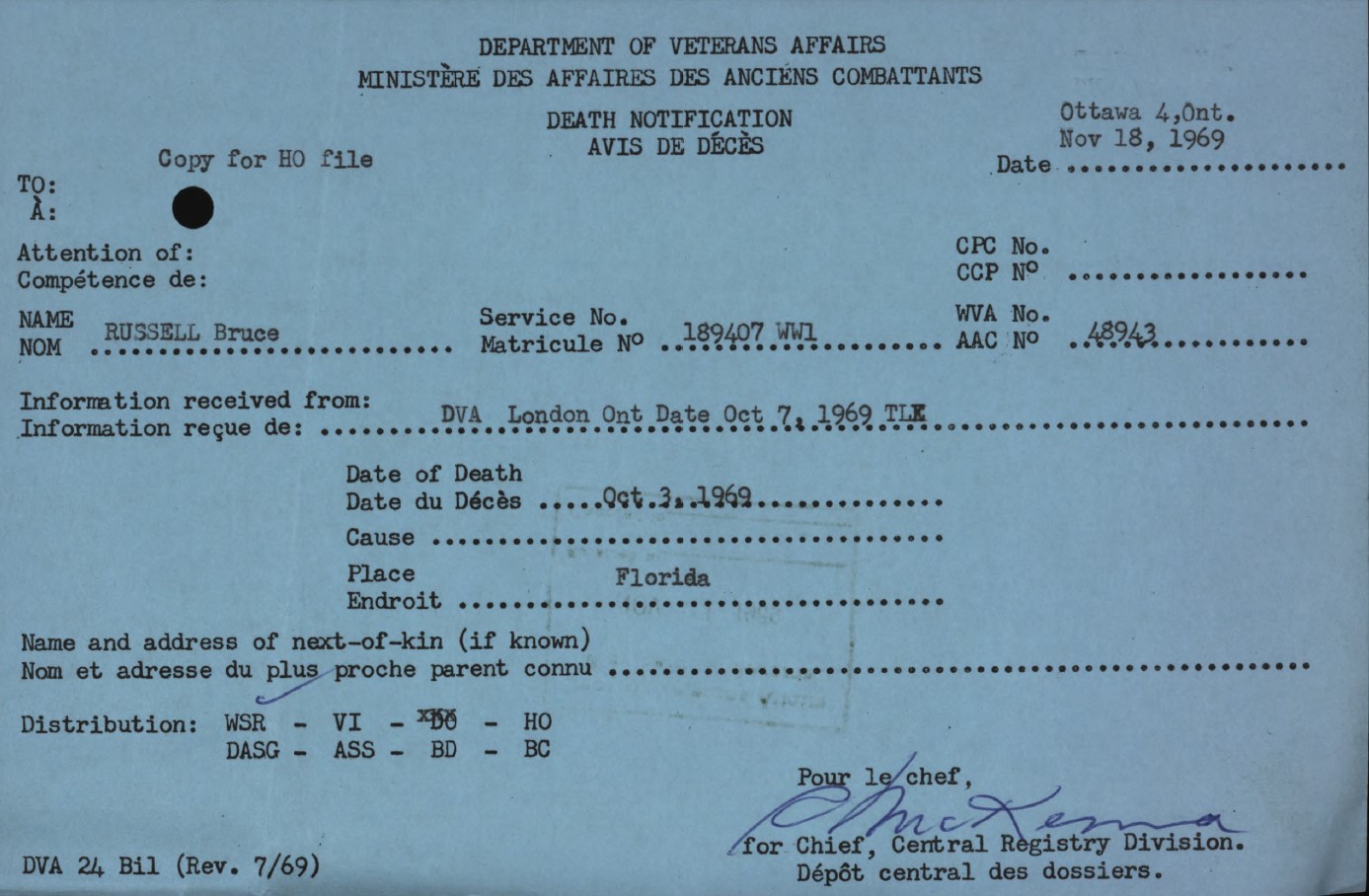 Russell, Bruce Morton: Service no. 189407 Digitized Service Record Source: Gathering Our Heroes Find-A-Grave Russell, Bruce Morton: Service no. 189407. Source: Gathering Our Heroes Share this: Click to email a link to a friend (Opens in new window) Email Click to share on Facebook (Opens in new window) Facebook Click to share on X (Opens in new window) X Click to share on Reddit (Opens in new window) Reddit Click to share on LinkedIn (Opens in new window) LinkedIn Click to print (Opens in new window) Print Click to share on Tumblr (Opens in new window) Tumblr Click to share on Pocket (Opens in new window) Pocket Click to share on Pinterest (Opens in new window) Pinterest Click to share on Telegram (Opens in new window) Telegram Click to share on WhatsApp (Opens in new window) WhatsApp Like Loading...