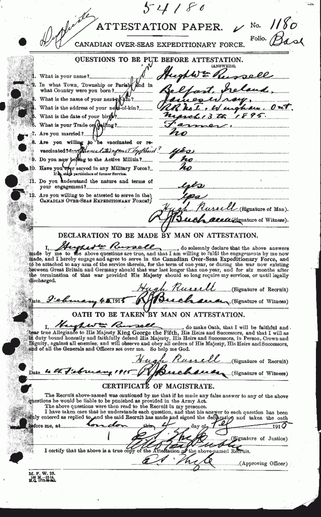 Source: 18th Battalion Nominal Roll, April 1915.