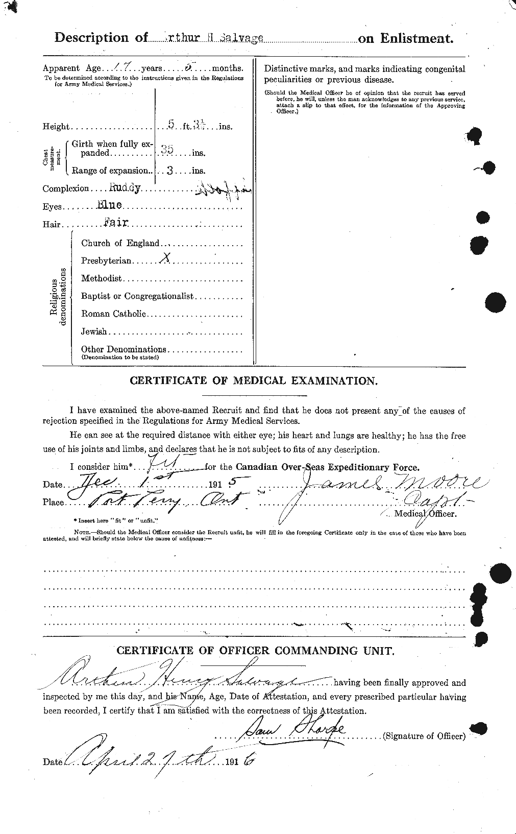 | Name | Salvage, Arthur Henry |
