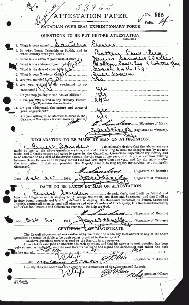 From @avidgenie: “He married Charlotte Gregory at Bolton, Lancashire in 1918. He was from Bolton so she may have been a childhood sweetheart. They came to Canada on the Melita in July 1919 and were living in Toronto in the 1921 Canadian Census with their young son Jack.”