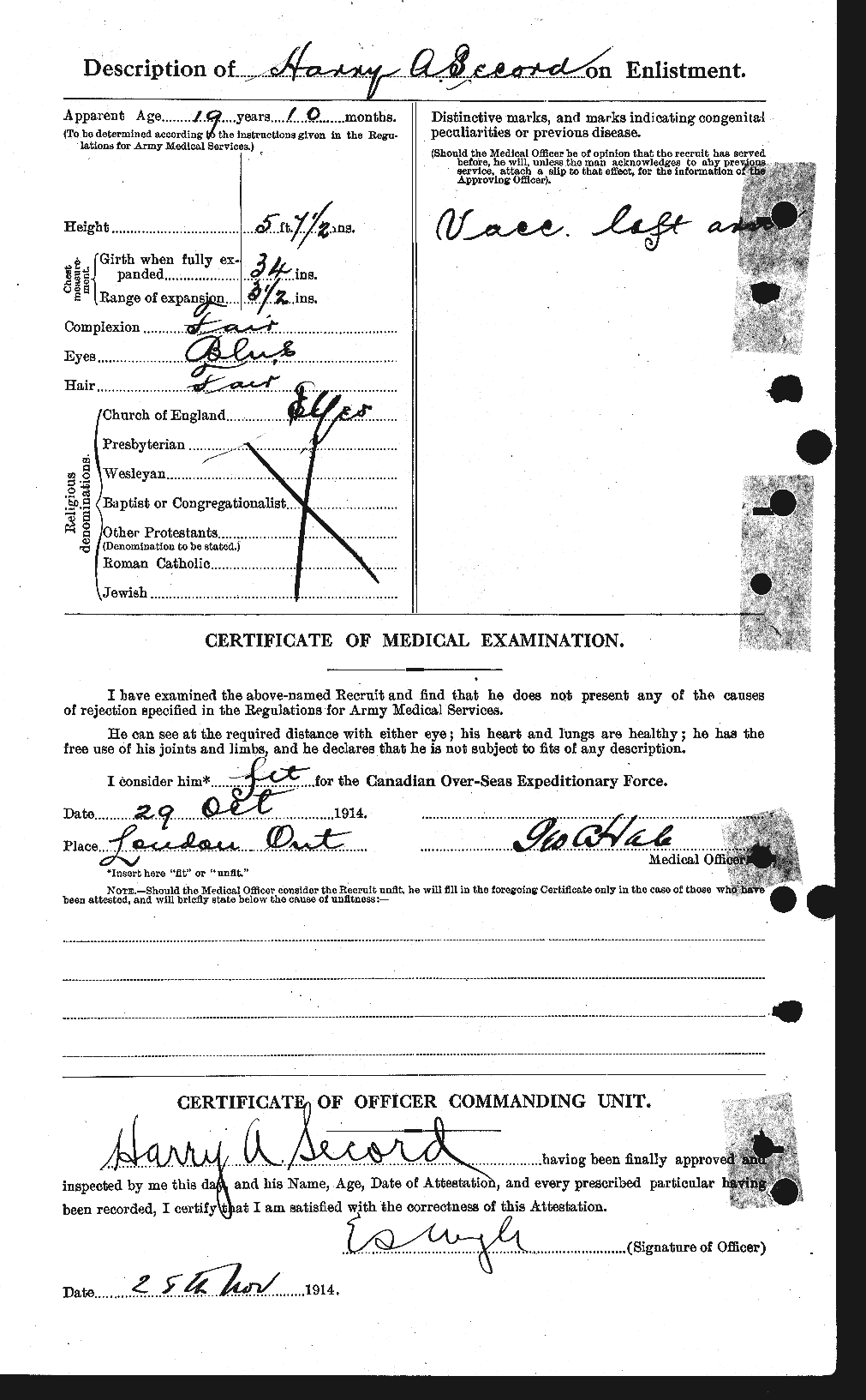 Note that under the L.A.C. online archives his regimental number is not used for searches. Use his name.