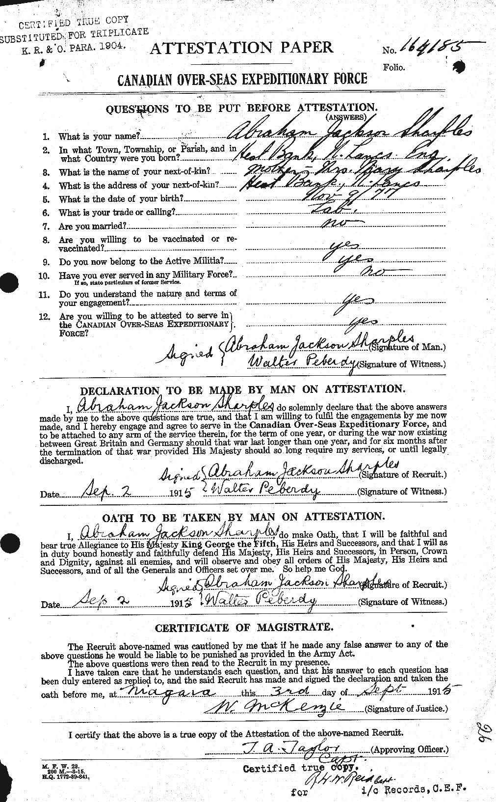 Name: Abraham Jackson Sharples (reg. no. 164185)