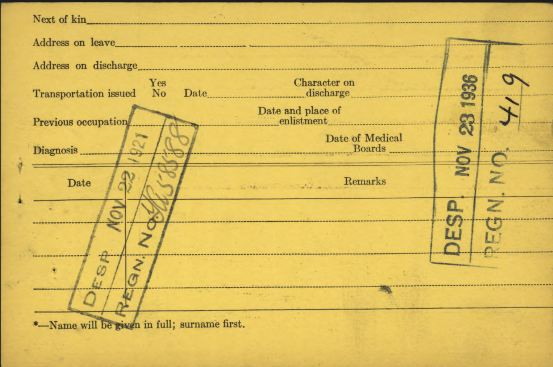 This man enlisted with the 1st Depot Battalion Wester Ontario Regiment on 13 November 1917 at London, Ontario. He previously had attempted to enlist in the US Navy but appears to have been rejected and decided to come to Canada to enlist.