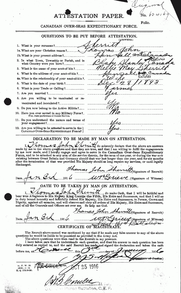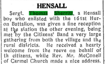 Source: Per via Facebook message by Allan Miller regarding research relating to the 161st (The Hurons) Battalion.