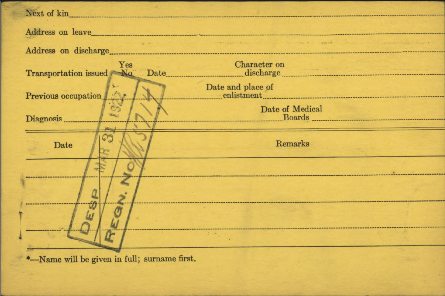 He was discharged due to demobilization on 28 March 1919 at London, Ontario.