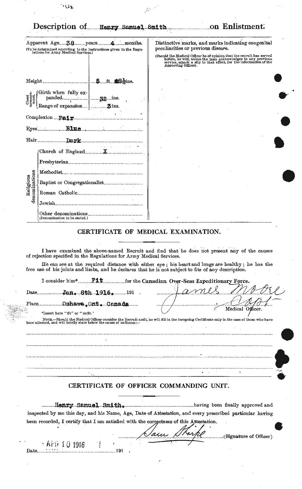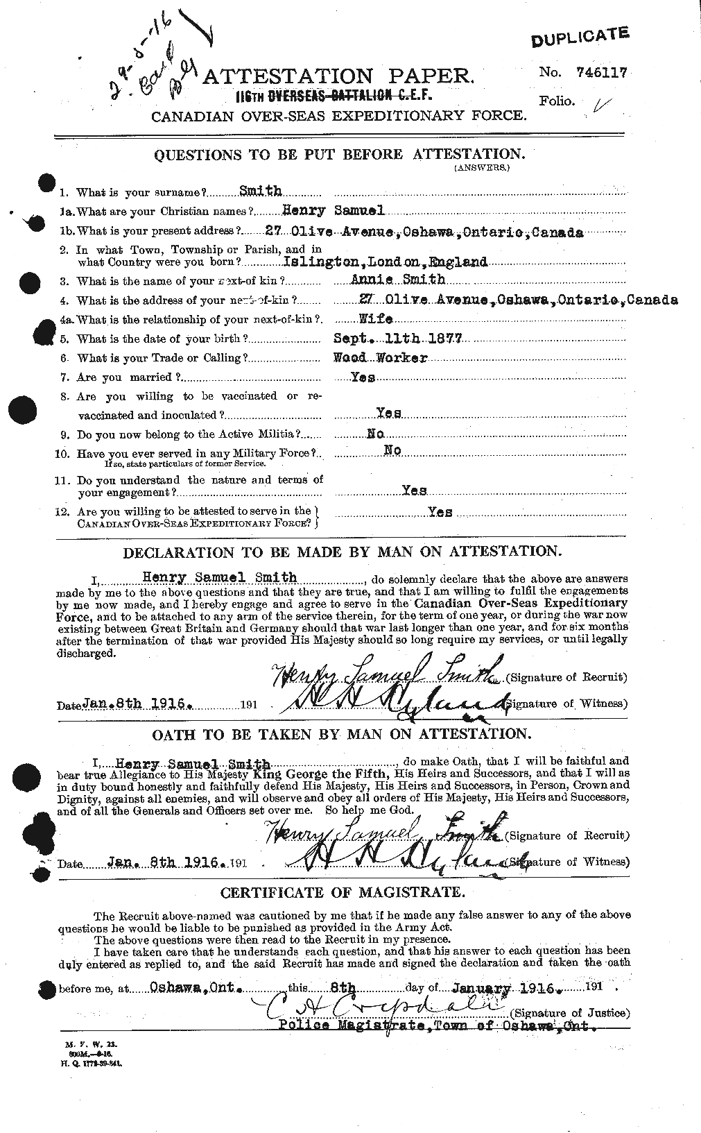 | Enlistment place | Oshawa |
