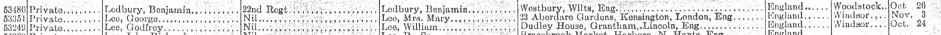 In this case I have a soldier: Lee, George: Service no. 53351. Currently at the LAC there are no attestation papers or digitized record. Further, a search of the CWGC site furnishes no casualty record. We do have the 1915 Nominal Roll entry so some basic details can be recorded and he is mentioned in the M.O.’s War Diary. Other than that, at this time, he barely exists.