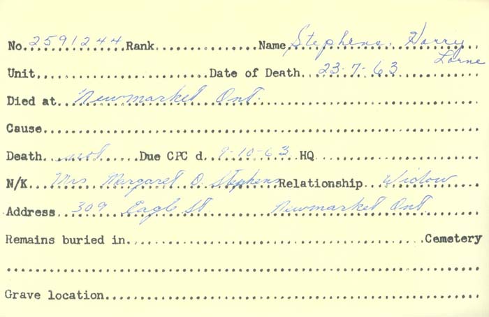 But in doing research on this soldier another was found: H. Lorne Stephens.