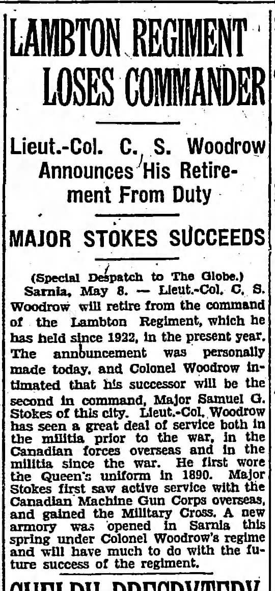 Family Search: When Lieutenant-Colonel Samuel Gladstone Stokes was born on 29 July 1893, in Petrolia, Lambton, Ontario, Canada, his father, Samuel Cole Stokes, was 44 and his mother, Margaret Grieve, was 44. He had at least 1 son and 1 daughter with Jennie Louise Pollard. He lived in Lambton, Ontario, Canada for about 10 years and Tampa, Hillsborough, Florida, United States in 1978. He registered for military service in 1916. In 1958, at the age of 65, his occupation is listed as packaging manager, imperial oil canada ltd. in Sarnia, Lambton, Ontario, Canada. He died on 1 March 1978, in Treasure Island, Pinellas, Florida, United States, at the age of 84, and was buried in Hillsdale Cemetery, Petrolia, Lambton, Ontario, Canada.