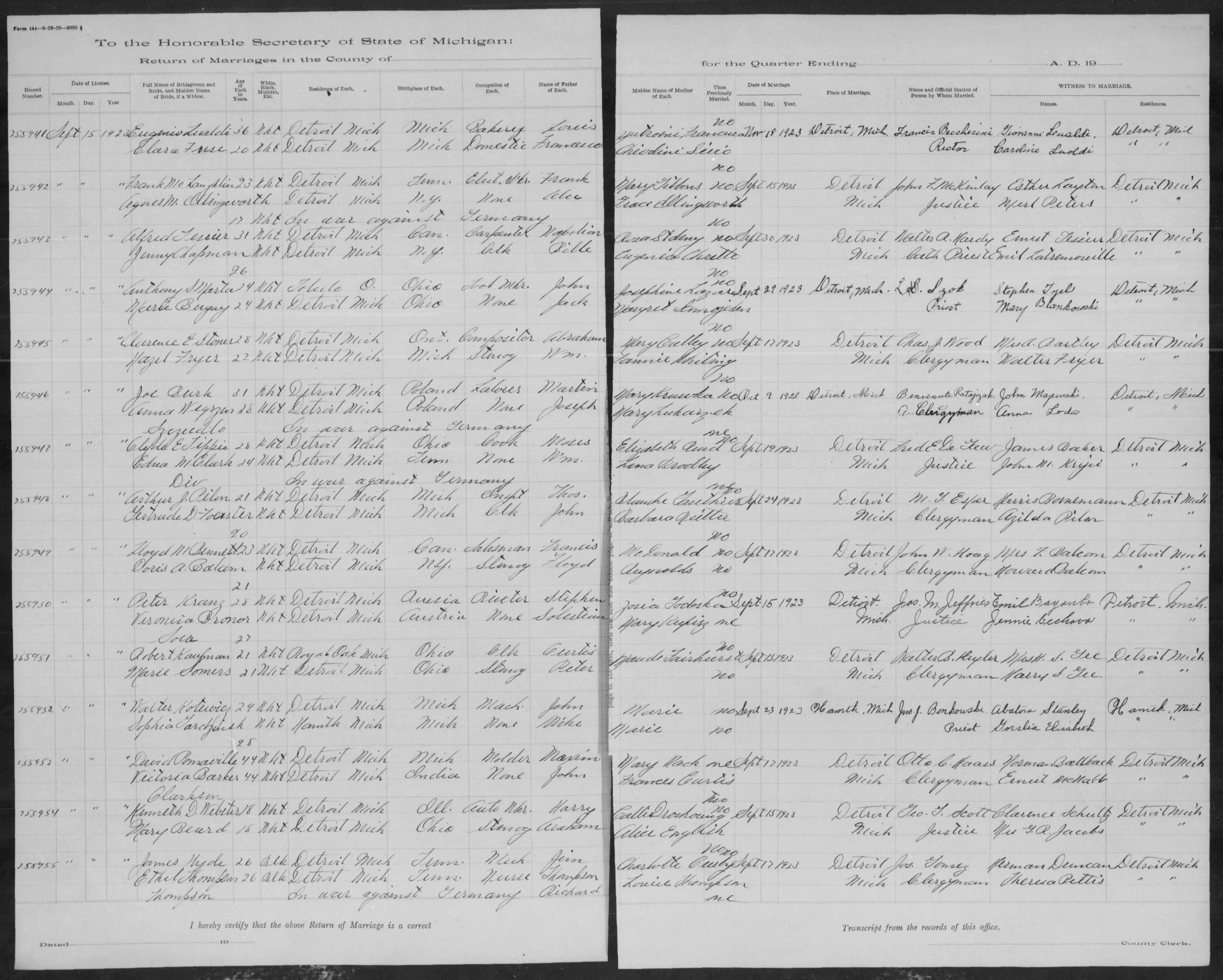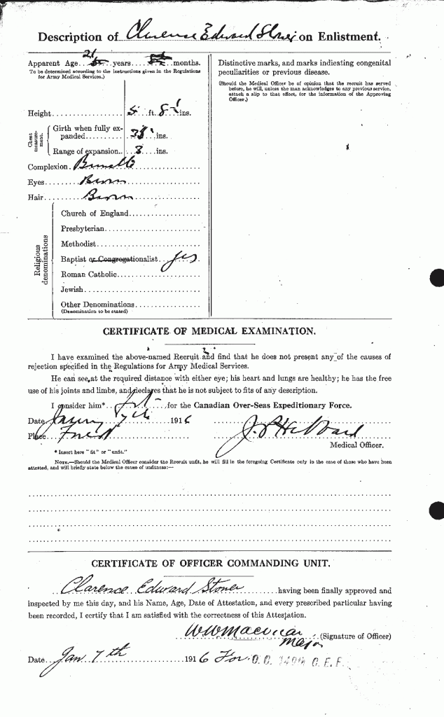 Family Search: Clarence Edward Stoner was born on 27 December 1894, in Forest, Lambton Shores, Lambton, Ontario, Canada. He married Hazel Mae Fryer on 17 September 1923, in Detroit, Wayne, Michigan, United States. They were the parents of at least 1 daughter. He registered for military service in 1916. In 1916, at the age of 22, his occupation is listed as printer. He died on 4 October 1955, at the age of 60.