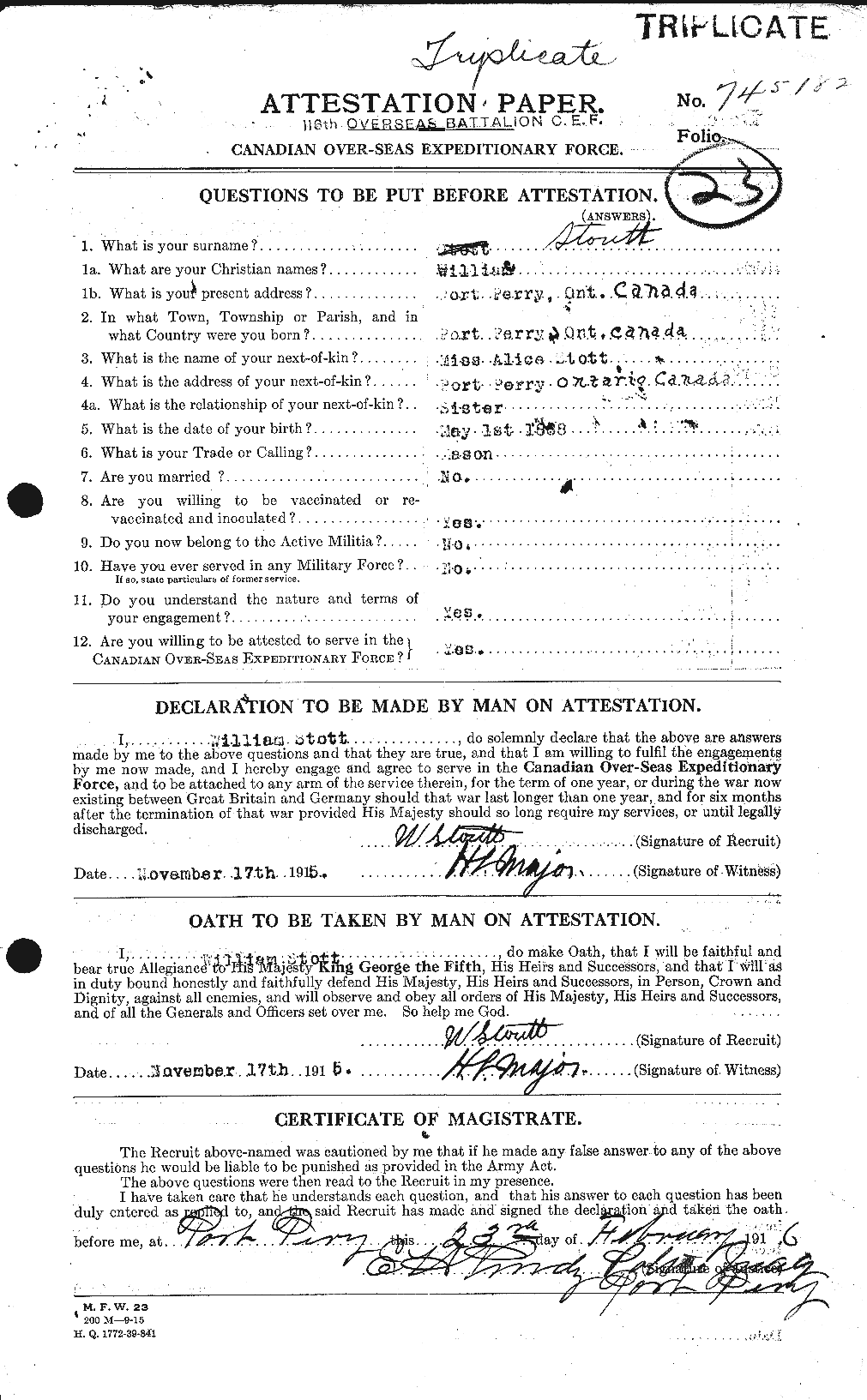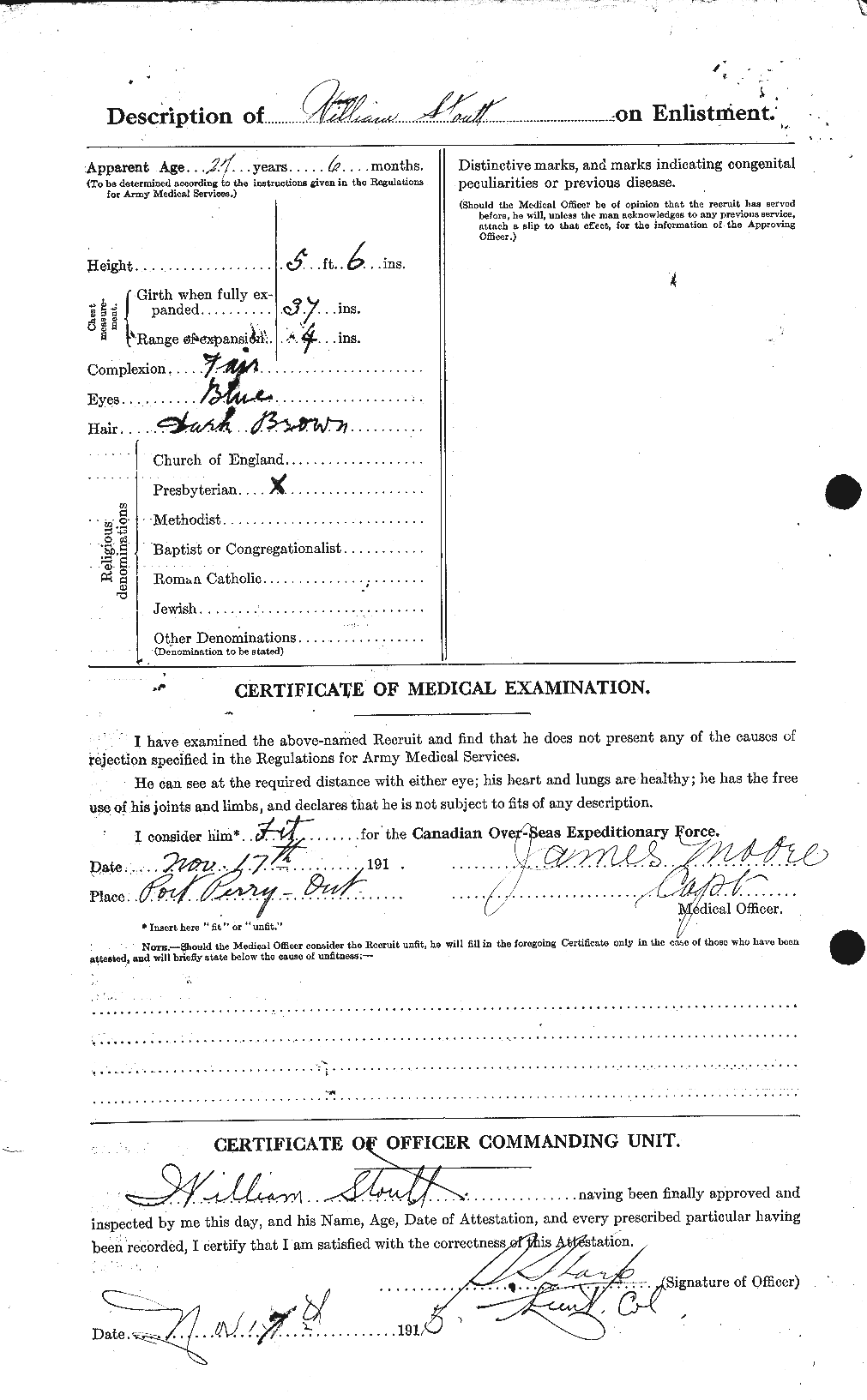 | Enlistment place | Port Perry |