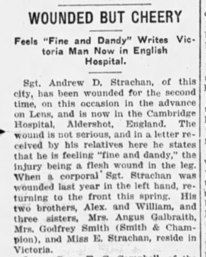 Survivors include one daughter-in-law, Mrs. Norma Strachan of Portland; one sister, Mrs. Olive Smith of Victoria, B.C.; one niece, Mrs. Elsie Lohr of Sao Paulo, Brazil and two grandchildren.