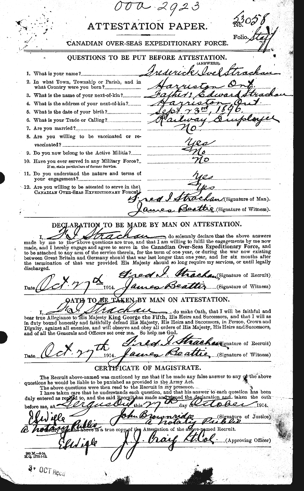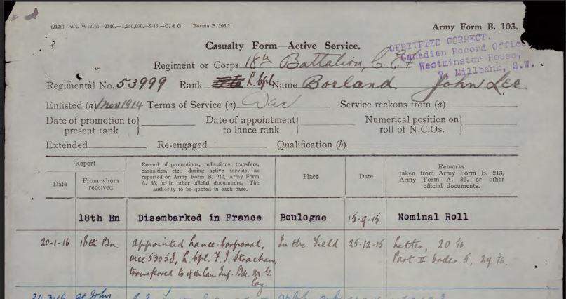 Source: Service records of John Lee Borland, regimental no. 53999.