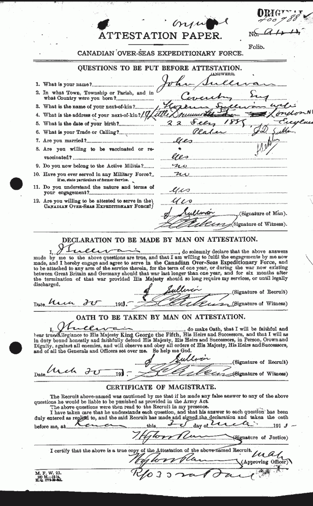 This soldier demobilized in England. Last known address was 19 Little Drummond Street, Euston Square, NW1.