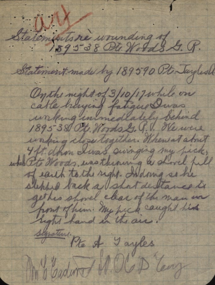 Regimental number: 189590. Reference: RG 150, Accession 1992-93/166, Box 9511 – 30, Item: 270797, PDF:- B9511-SO30. Medical Board at Chatham, ON. 28/02/17 “Fit”. Date of Birth 13/01/1892 at Welby Warren, England. Next of Kin: Son of Louisa Taylor (mother) of Welby Warren, Granthan, Lines, Lincolnshire, England. Address: Dover Twsp., Kent, Co., ON. Arthur was a farmer living in Dover Twsp., Kent Co. ON. Single. Attestation: 8/12/1915 at St. Thomas, ON. to 91st Bn. Present address at Dover Twsp. Kent Co. ON.
