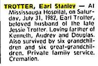 Family Search: When Corporal Errol Stanley Trotter was born on 1 September 1893, in Port Credit, Mississauga, Peel, Ontario, Canada, his father, William Henry Trotter, was 54 and his mother, Frances Caroline Evans, was 39. He married Jessica Rosina Powell on 26 September 1919, in Toronto, Ontario, Canada. They were the parents of at least 1 son and 1 daughter. He lived in Peel Township, Wellington, Ontario, Canada in 1911 and Port Credit, Peel, Canada West, British North America in 1931. He registered for military service in 1915. In 1931, at the age of 38, his occupation is listed as truck driver in Port Credit, Toronto Township, Peel, Ontario, Canada.