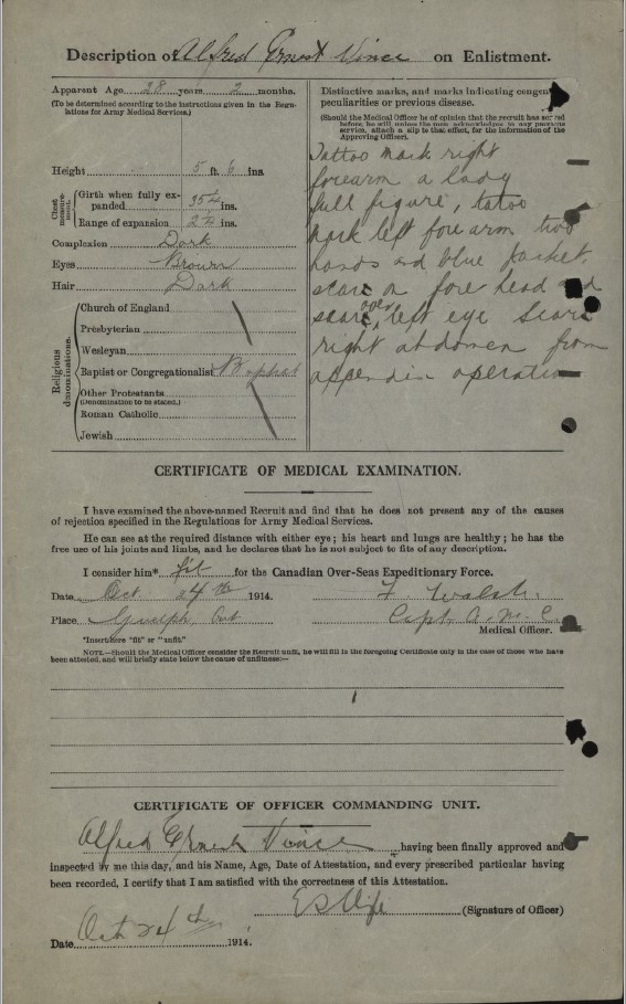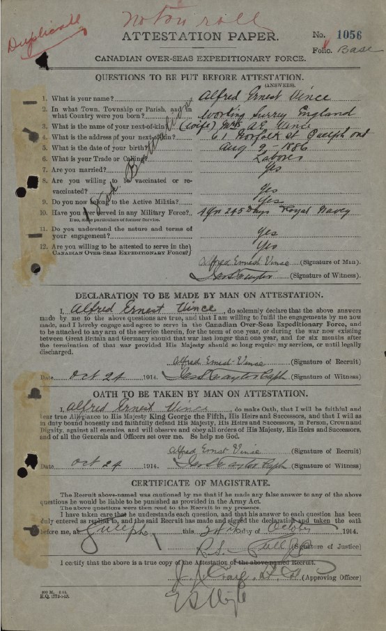 Note that this soldier is not on the nominal roll as he was released from service before the Battalion went overseas.