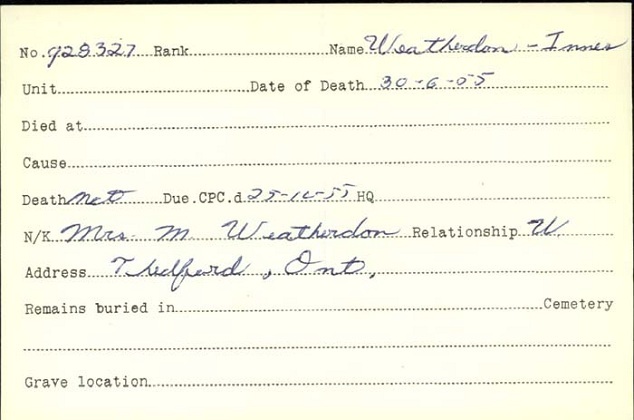 Brother to Weatherdon, James Reid: Service no. 928470.