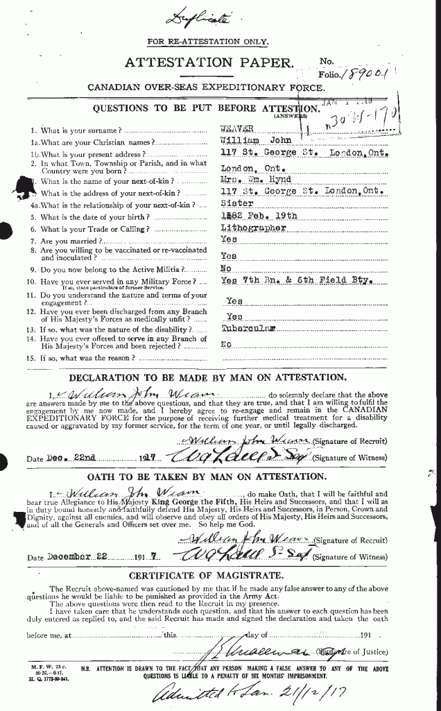 Note that this soldier deserted from the 18th on January 15, 1915. He rejoined the CEF and served with the 2nd Battalion.
