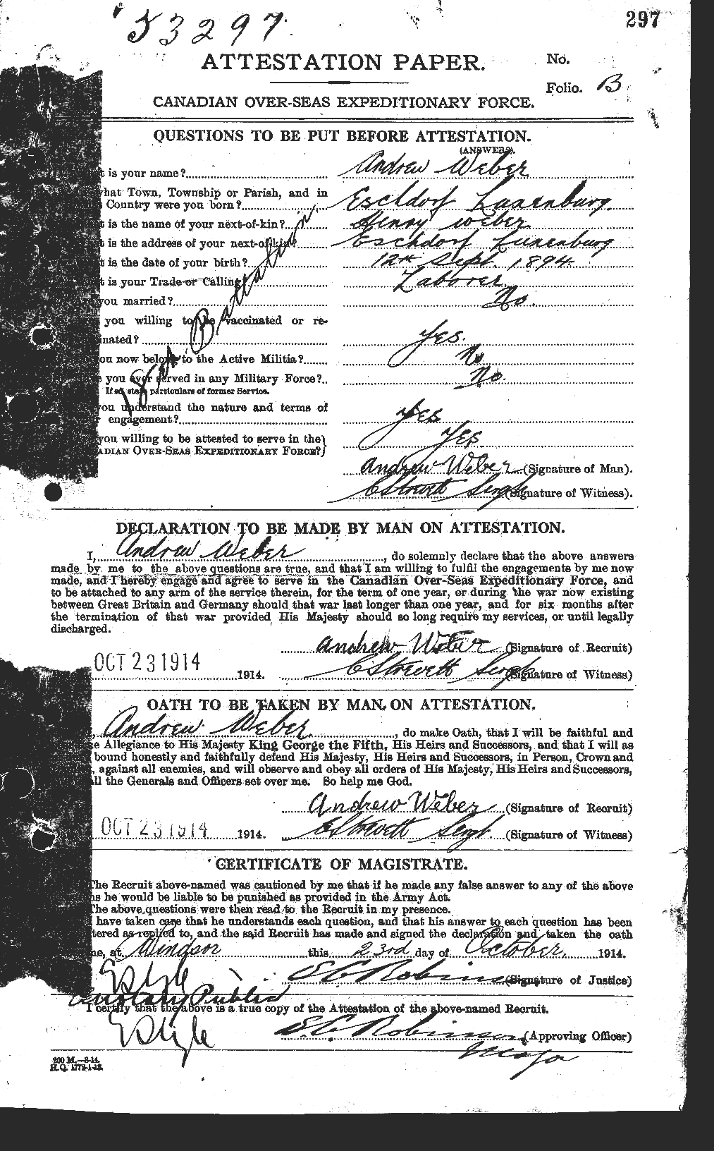 Note that this soldier’s name was first posted as “Weber” and upon a review of his service file corrected to “Webber”.