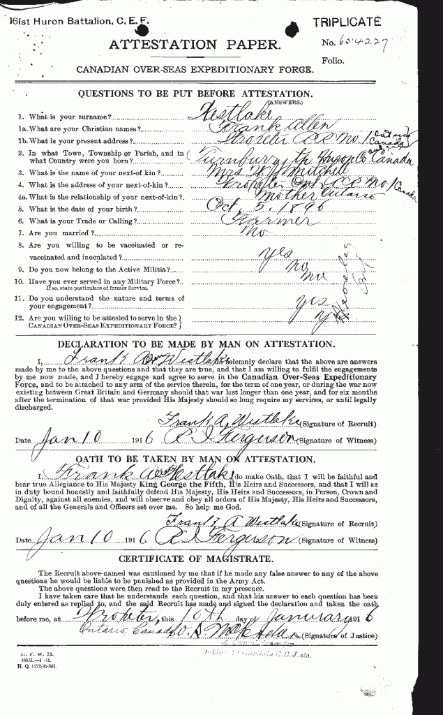 Pte. Frank A. Westlake