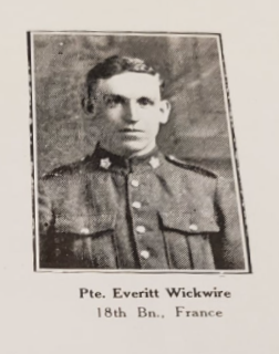 His brother, Orvis Earl Wickwire, reg. no. 880717, also served in the 18th Battalion.