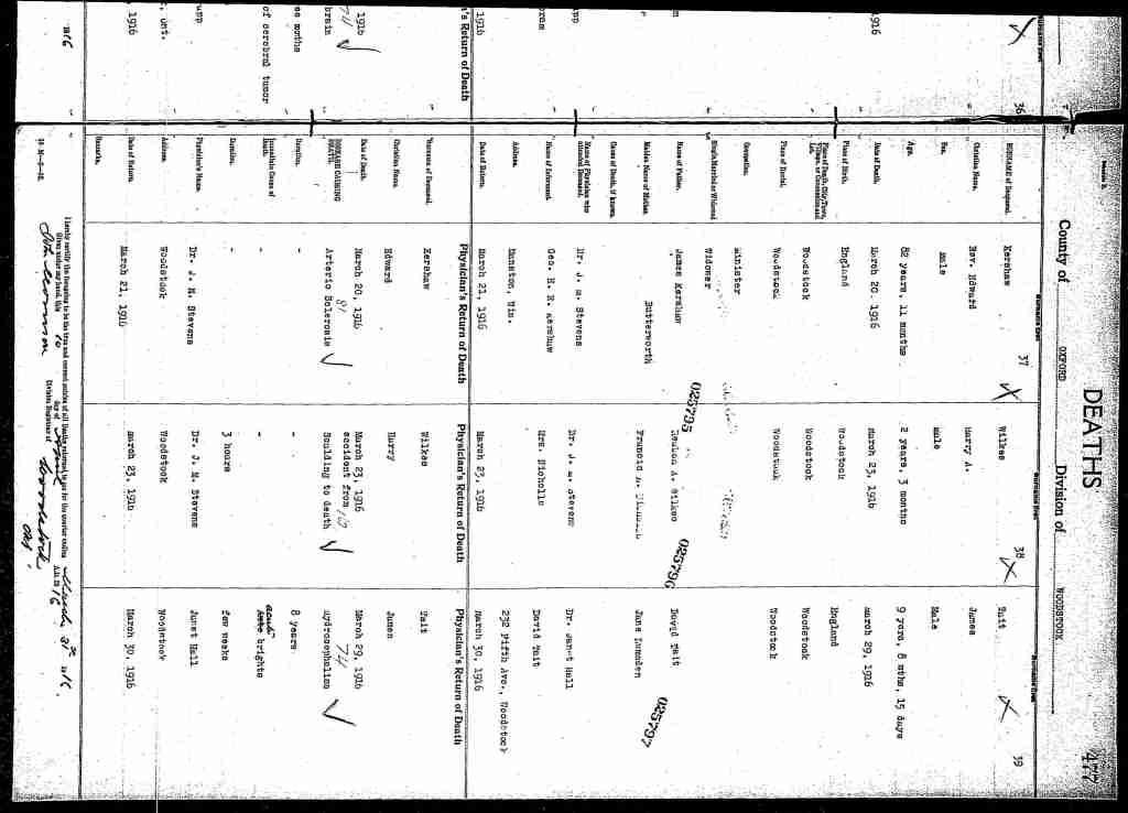 Source: Found in news clipping from the London Advertiser dated March 24, 1916 about the death of his child.