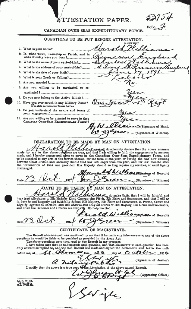 Williams, Harold: Service no. 53754 Digitized Service Record Source: Unknown. Find-A-Grave Brother to Percy Williams, reg. no. 53753. Share this: Click to email a link to a friend (Opens in new window) Email Click to share on Facebook (Opens in new window) Facebook Click to share on X (Opens in new window) X Click to share on Reddit (Opens in new window) Reddit Click to share on LinkedIn (Opens in new window) LinkedIn Click to print (Opens in new window) Print Click to share on Tumblr (Opens in new window) Tumblr Click to share on Pocket (Opens in new window) Pocket Click to share on Pinterest (Opens in new window) Pinterest Click to share on Telegram (Opens in new window) Telegram Click to share on WhatsApp (Opens in new window) WhatsApp Like Loading...