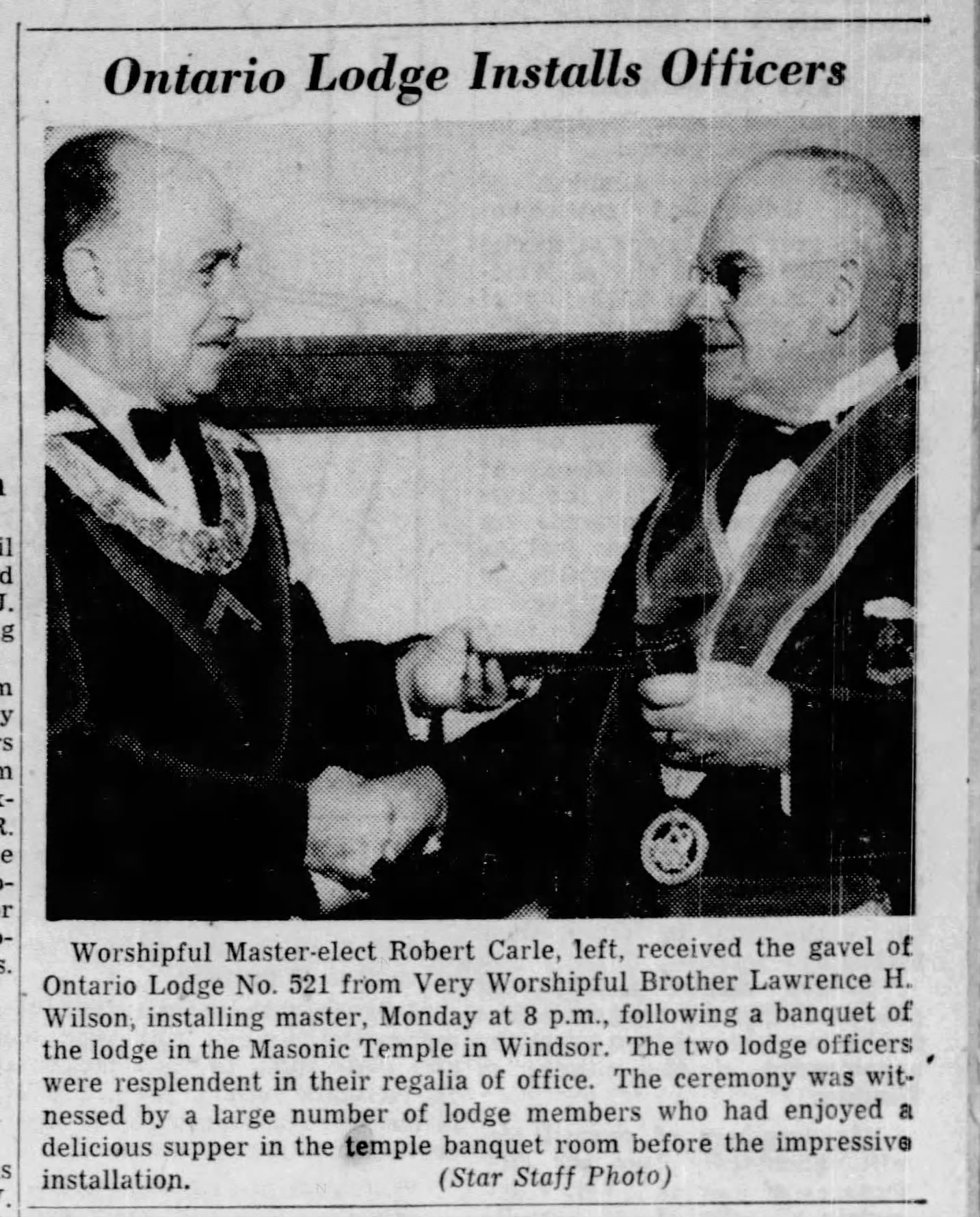 He was a past master of Ontario Lodge 521 A.F. and A.M., member of Windsor Lodge of Perfection, Rose Croix of Windsor, Moore Consistory of Hamilton, A. and A.S.R., Mocha Shrine Temple and Hiram Abiff Shrine Club of Windsor. He was also a member of Central United Church.