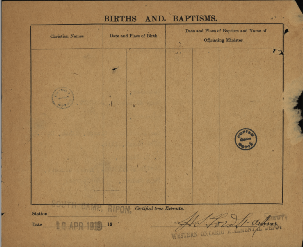 He was granted a permission to marry on 11 April 1919.