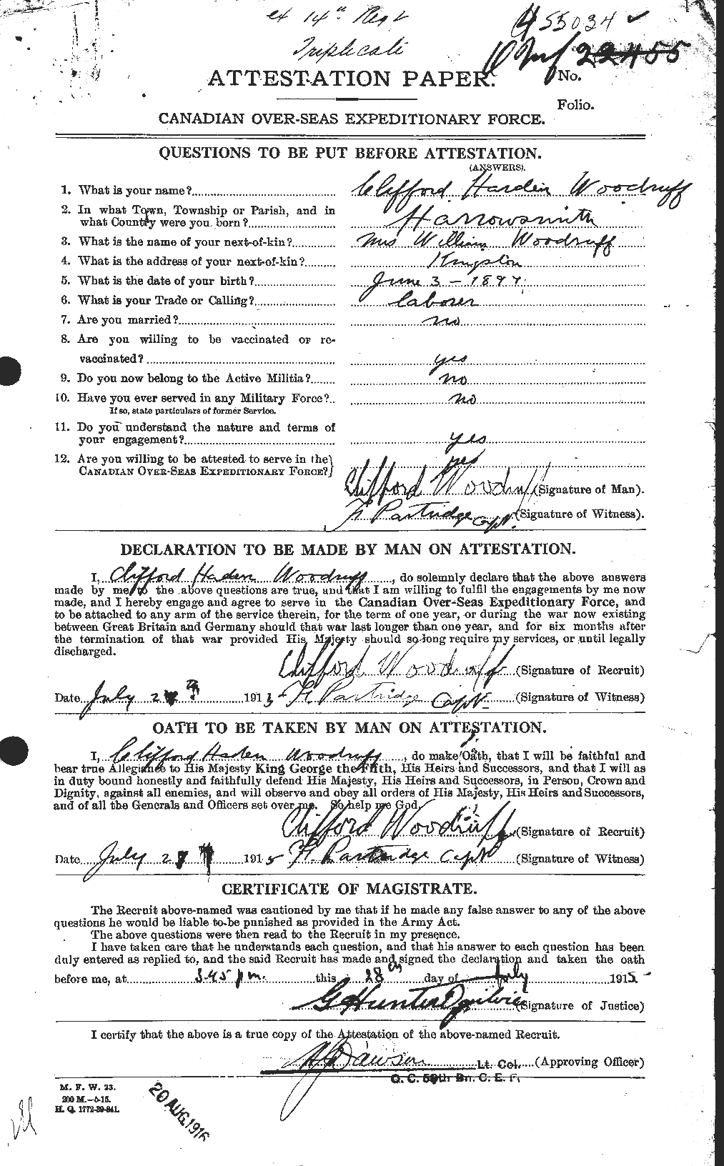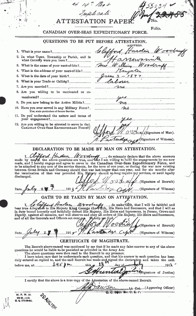 Source: During research on Veterans Death Card for Private Wolsford Military Medal, reg. no. 53178 this card was found.