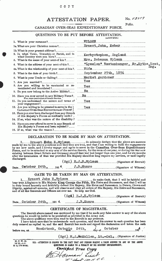 On Sunday afternoon the Grand Trunk 5.13 train brought to the city Sergt. Jack Wylson, who went overseas with the original 18th battalion. He was at the front for about a year, and went through some of the stiffest engagements of the war without a scratch. Some months ago, however, he developed a lung trouble which necessitated his being invalided to England, and subsequently to Canada. He was met by a delegation of returned soldiers and Soldiers’ Aid Commission representative and given a warm welcome.