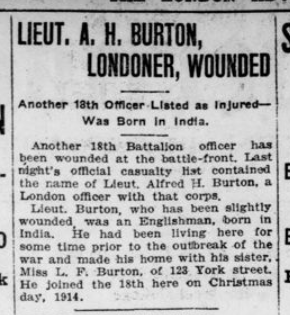 Named in February 2, 1916 War Diary entry: “LIEUT BURTON admitted to hospital (shell shock.)