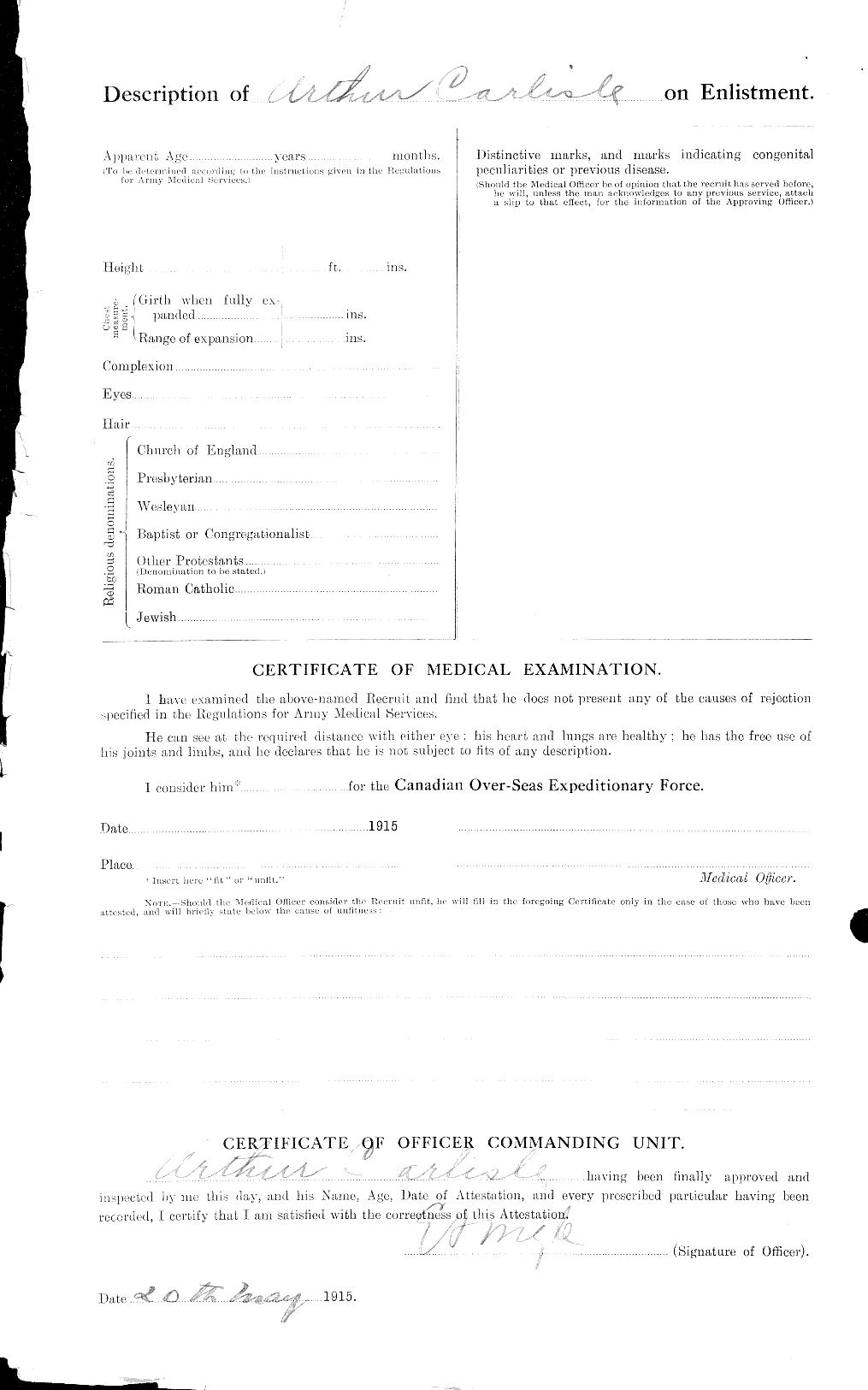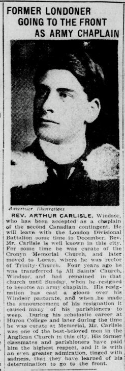 Family Search: When Reverend Arthur Carlisle was born on 29 November 1881, in Portsea, Hampshire, England, United Kingdom, his father, James Carlisle, was 49 and his mother, Mary Agnes Stares, was 29. He married May C Emery on 23 June 1919, in Windsor, Sandwich, Essex, Ontario, Canada. They were the parents of at least 1 son. He immigrated to Montreal, Quebec, Canada in 1923 and lived in London, Ontario, Canada in 1891 and Essex, Ontario, Canada in 1911. He died on 5 January 1943, at the age of 61, and was buried in Montreal, Quebec, Canada.