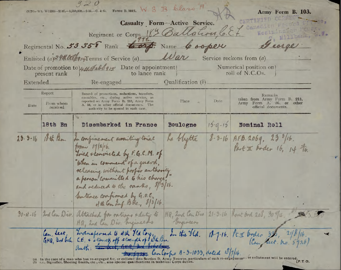 Note that this Find-A-Grave is not confirmed as this man. Service records show he intended to reside at Sarnia, Ontario after the war.