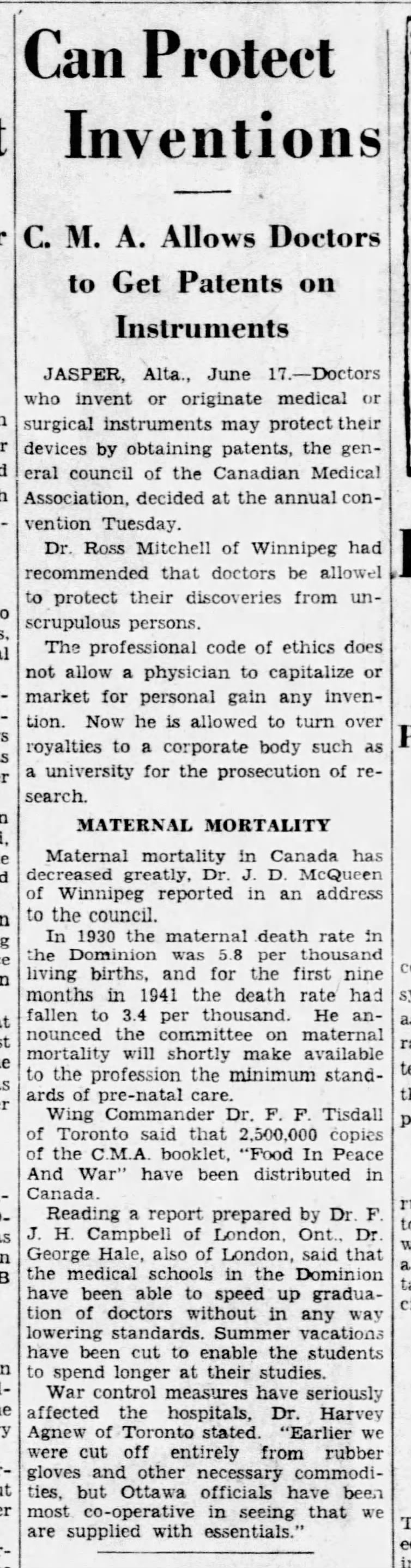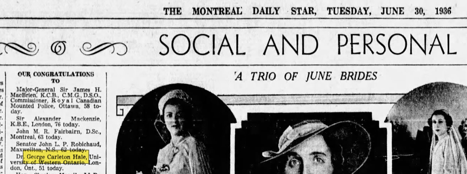 Dr. George C. Hale was born in Ottawa in 1885. He graduated from McGill with an M.D. in 1909. Interning at Montreal General Hospital for two years, Dr. Hale completed postgraduate work in London, Berlin, Munich, and Vienna.