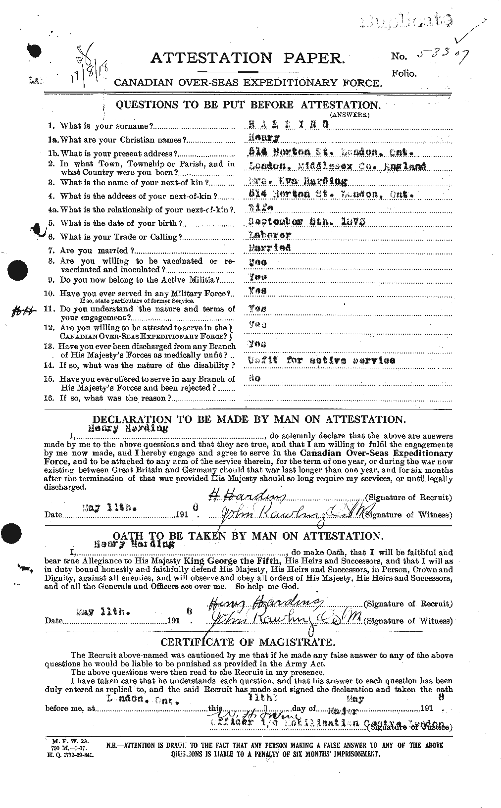 - The top set were attested on May 13, 1918 and the bottom set are dated April 17, 1916 but no signature on the second page.