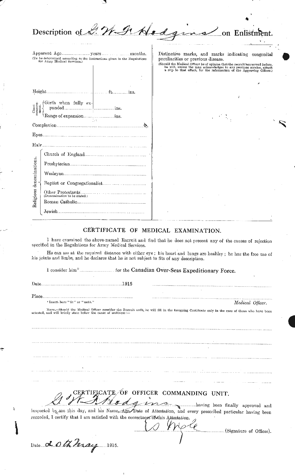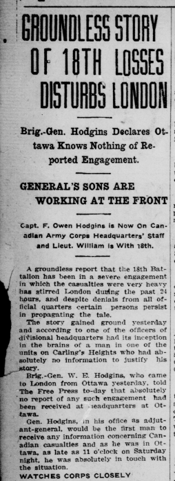 Source: Mentioned in War Diary May 1916. Father was Major General William Egerton Hodgins.