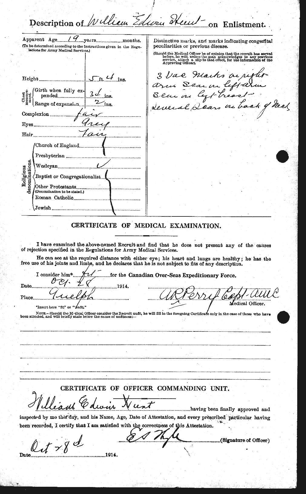 William Edwin Hunt was to survive the war with the loss of his leg. More information about this soldier here and here.