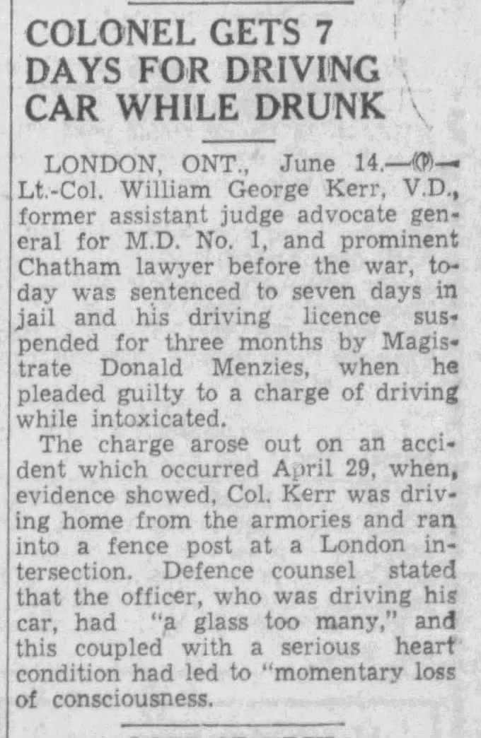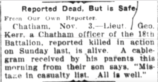Lieutenant William George Kerr honorably retired to the C.E.F. Reserve of officers on September 30th, 1917, as unfit for overseas service.