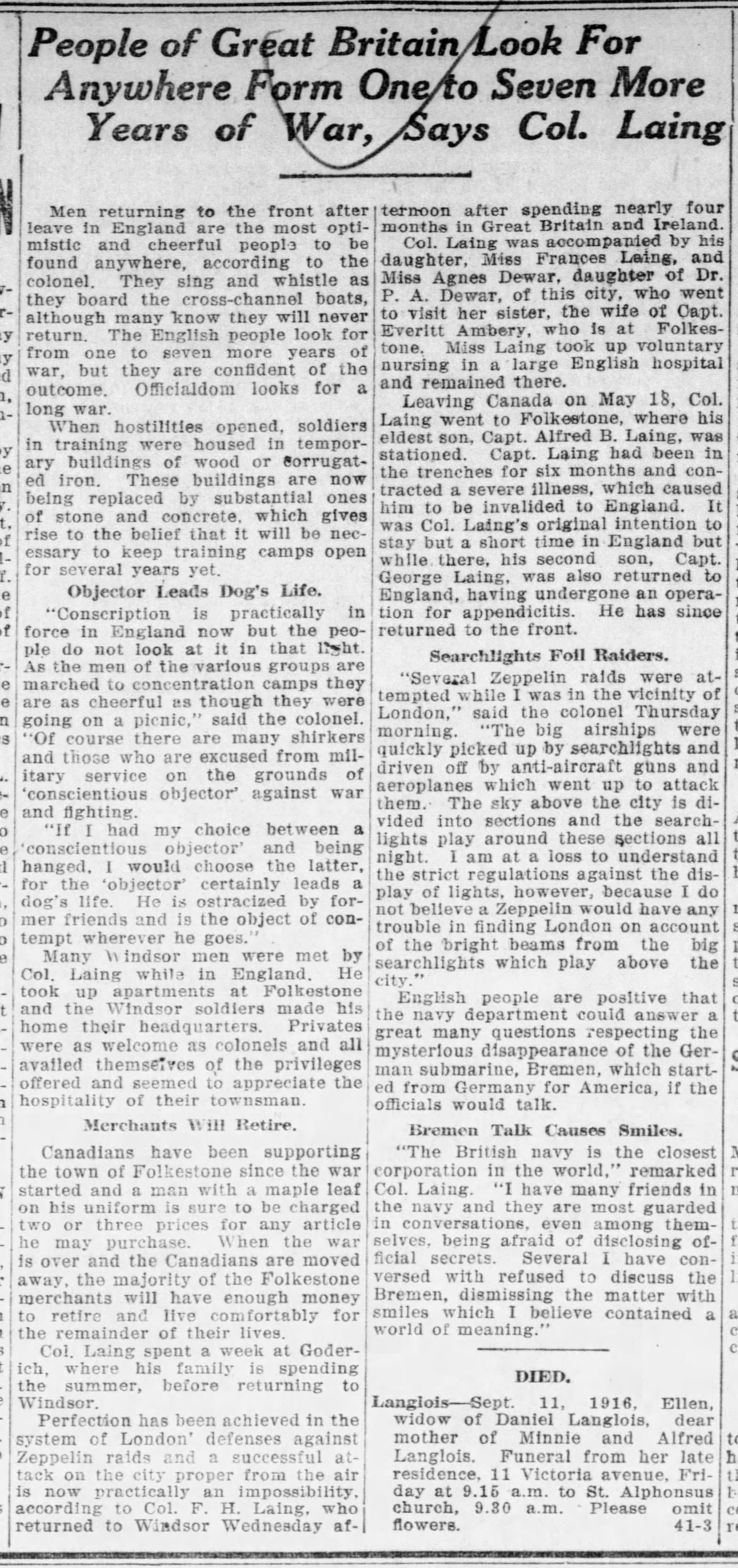 Source: Son of Lieut-Col. Laing