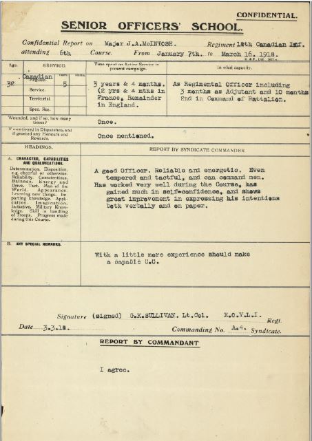 Col. McIntosh was active in the non-permanent militia between the two world wars and took part in the reorganization of the HLI of C of which he was second-in-command in 1937.