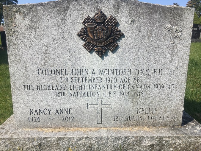 Following the war, McIntosh helped reorganize the Highland Light Infantry of Canada, becoming commanding officer in 1937. In 1940 he was the first officer of the Highland Light Infantry of Canada to enlist in World War II. Taking command of 1,100 men, he blended them into a highly competent and proud unit that proved in battle to be one of Canada’s finest battalions. In Britain, he was promoted to the rank of Colonel, and returned home in 1944.